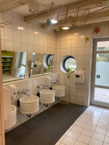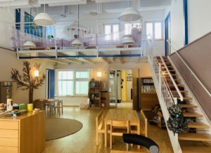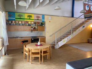 Der Kindergarten hat vier Gruppenräume mit jeweils einem Nebenraum und zusätzlich einer Galerie.
