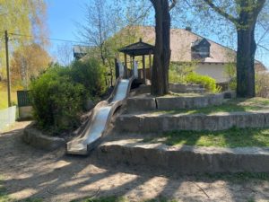 Der Garten hat eine Grundfläche von ca. 3000 qm und ist von der Eingangshalle, sowie von jedem Gruppenraum aus zugänglich.