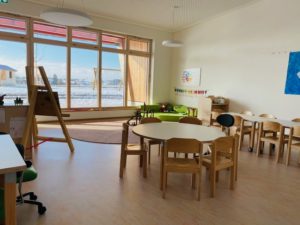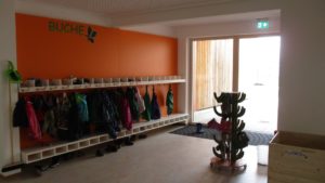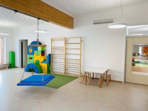 Gruppenübergreifend steht die Lernwerkstatt für individuelle Angebote sowie eine großräumige Spielehalle, in der die Kinder in verschiedenen Themenecken ihren Bedürfnissen nachgehen können, zur Verfügung. Die gesamte Einrichtung nutzt den Turnraum für individuelle Bewegungsangebote.