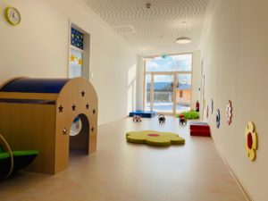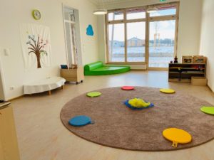 Im September 2020 sind wir in unseren Neubau in der Seyboldsdorfer Str. 93 eingezogen. Unsere Einrichtung zeichnet sich durch hohe lichtdurchflutende Räume sowie großen Fensterfronten aus. Die Kinderkrippe verfügt über zwei Gruppenräume, einem separaten Essbereich mit Einbauküche, einem Bad- und Wickelbereich, einem Ruheraum sowie einem großzügigen Spielegang. Im Kindergarten verfügt jede Gruppe über ein Gruppenzimmer mit einer Einbauküche sowie einem Nebenraum.